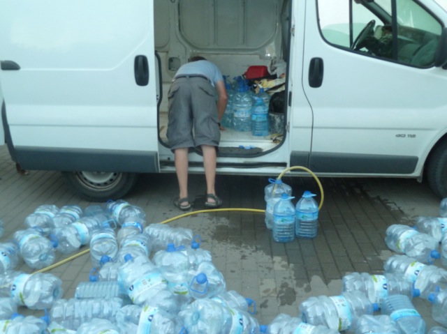 De meeste camperaars tanken schoonwater en douchen onderweg. Het klinkt wellicht wat vreemd maar als je douched bij het water tappunt kun je onbeperkt water gebruiken. Eventueel kun je de slang in de tank laten hangen. Daarna bijvullen en het grijze water lozen. Je kan dan fris, en voorzien van een volle verswatertank en met een lege vuilwatertank verder reizen.